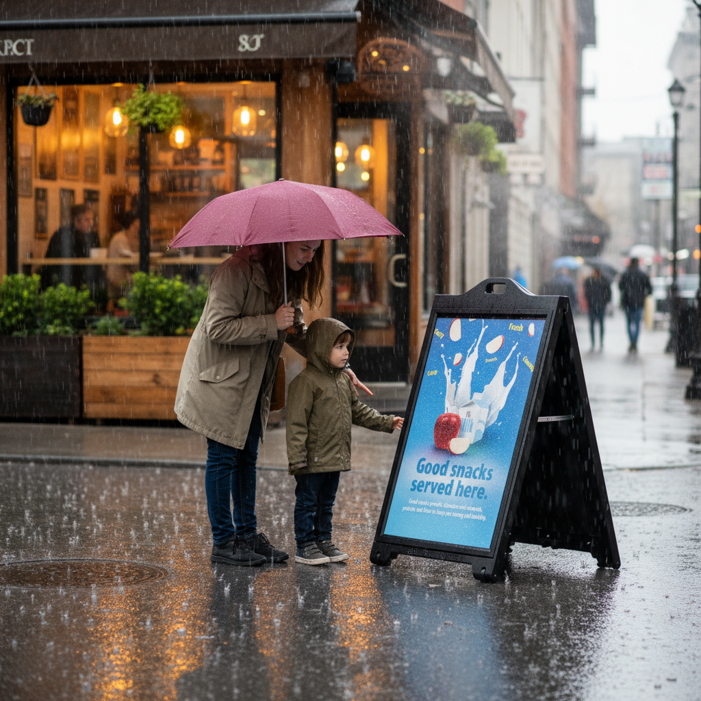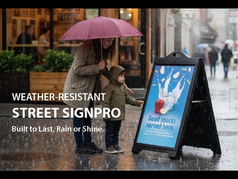Built for durability and ease, the Weather-Resistant Street SignPro features a magnetic seal system that keeps posters dry and secure in any weather.